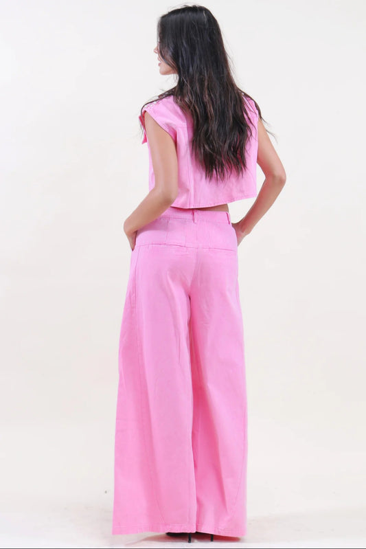 Lapel Collar Cropped Top and Wide Leg Pants Set