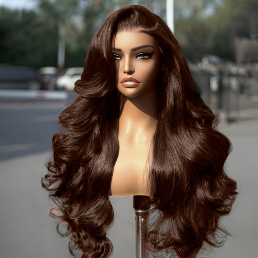 280% 13x4 #2 Body Wave Human Hair Wig HD Lace Dark Brown Body Wave Lace Frontal Wig Transparent Swiss Lace Colored Lace Front Wig Human Hair Wigs Chocolate Brown Body Wave Wig With Natural Hairline Three Part Body Wave Lace F