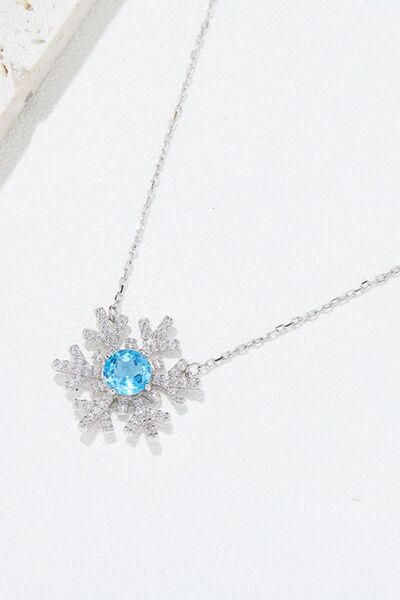 925 Sterling Silver Topaz Snowflake Shape Necklace