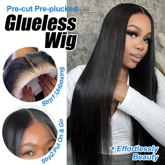 5x5 HD Lace Put On And Go Glueless Closure Wigs Human Hair Straight Human Hair Pre Plucked Pre Cut No Glue 3 Seconds To Wear Glueless Wig Transparent Lace Front Wigs Human Hair 250% Density