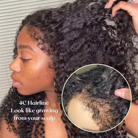 250% Density 4C Kinky Curly Human Hair Wig with 13x4 HD Lace Front - Pre-Bleached & Pre-Plucked Baby Hair, Breathable Swiss Lace for Zero Stress Wear, Realistic Scalp & Summer Comfort (Afro Curly, All Ethnicities), Comfortabl