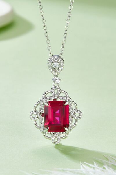 925 Sterling Silver Ruby Pendant Necklace
