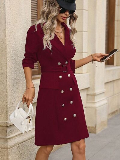 Double-Breasted Lapel Collar Long Sleeve Dress