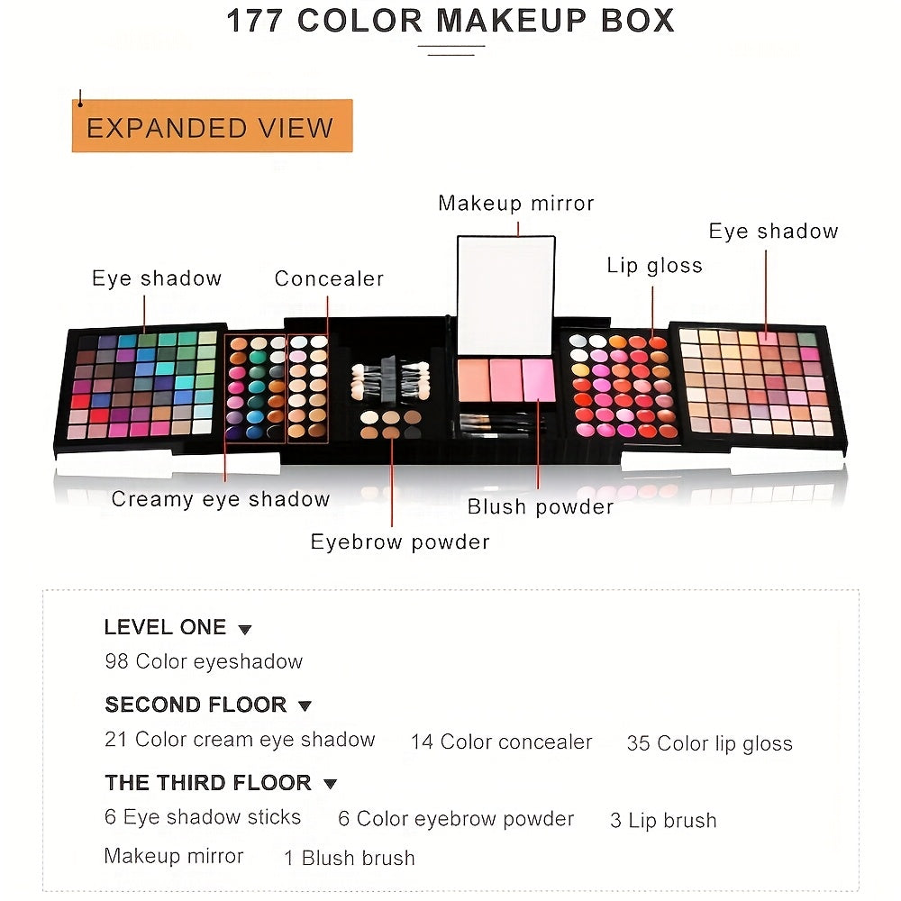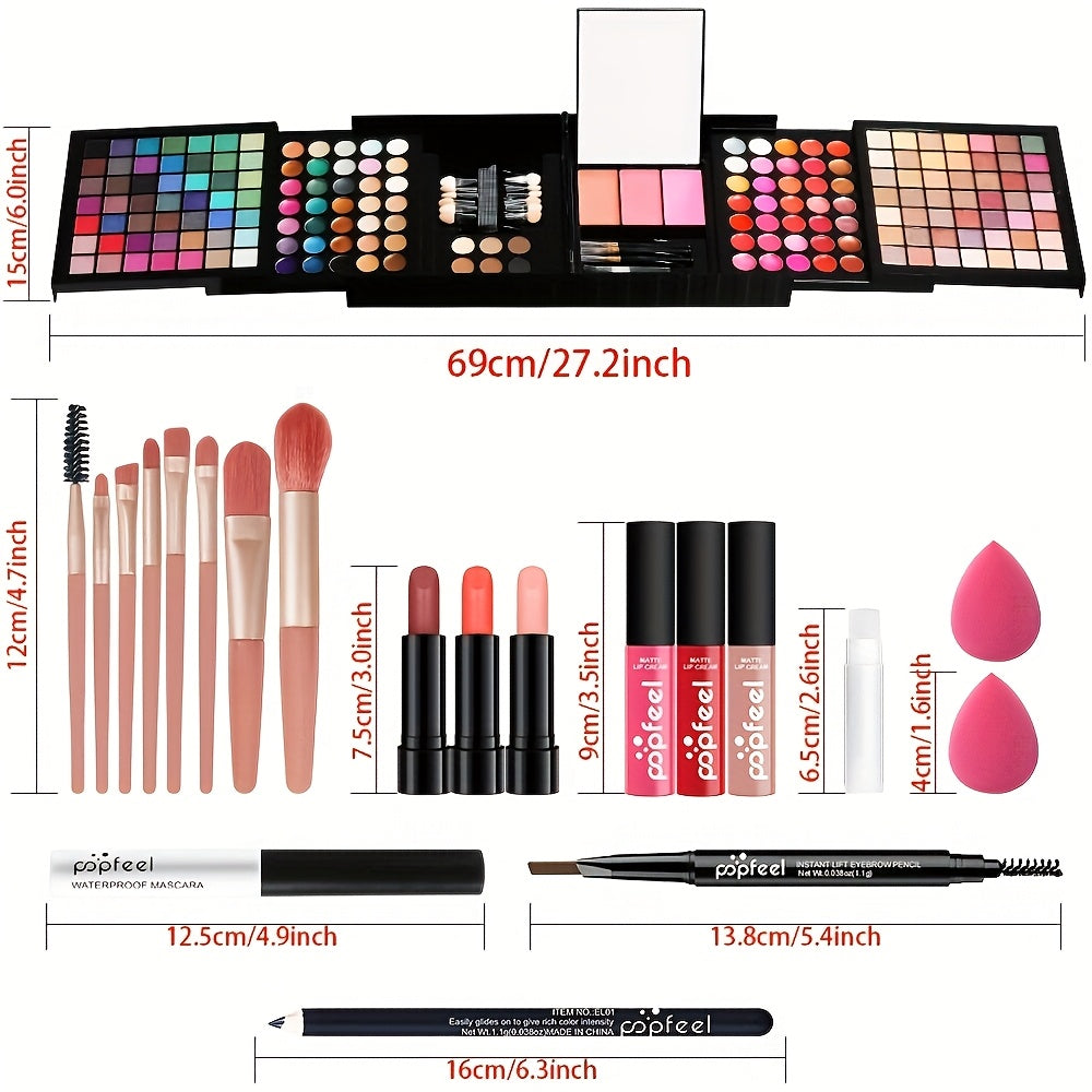 Makeup Set Gift Box Lipstick Eyebrow Pencil Eye Shadow Dish Makeup Tool Combination Durable Waterproof Lip Gloss Outdoor Travel Essential Makeup Bag Long-Lasting Beauty Solution Perfect Mother'S Day Gift